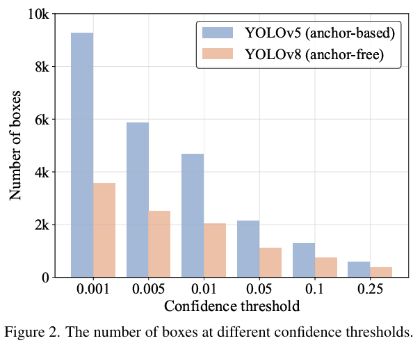 The results are clear at a glance. When the confidence threshold is set very low (such as 0.001), there are tens of thousands of boxes to process, while when the threshold is increased, the number of boxes to process decreases dramatically.